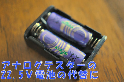 半田コテで修理する第2弾はテスタの高抵抗測定用電池の交換、といってもこの積層乾電池はもう入手できないので秋月電子で買ったリチウム電池2個で代替する。5-60年前には電池式ラジオや真空管式ラジコン用にまだ67.5Vの積層電池があった、とても高価だったが。 |