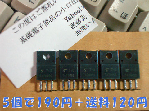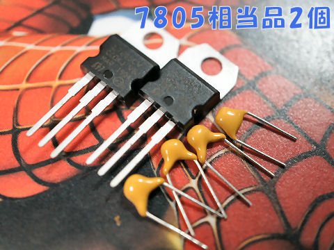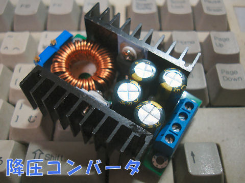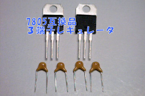中華製の降圧コンバータ、これは100円で買った24V電源を使うために購入、三端子レギュレータ7805相当品は安定化電源の修理のために準備。 |