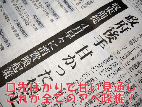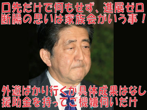 甘い見通しと「口だけ」迅速を繰り返し国民の顰蹙を買うアホノミクス首相。アホノミクスの成果はコロナで吹っ飛んでしまい業績はほぼ壊滅、モリカケや桜を見る会などで汚点ばかりがゾロゾロ。コロナ収束が見通せないのに利権まみれのGoto(強盗)プランだけは迅速など呆れるばかり。 |
