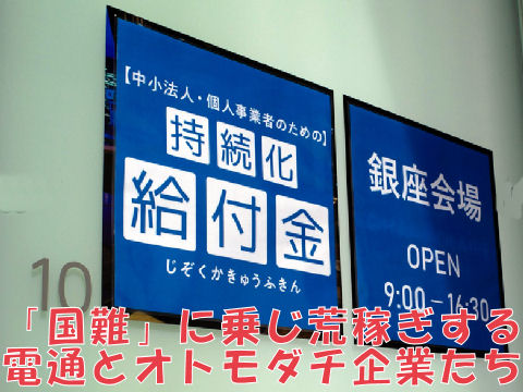 持続化給付金事業に巣くって荒稼ぎする電通、実務は子会社やオトモダチ企業へ委託しサヤ稼ぎで大きな利益、その事業も欠陥だらけで中断中。国難に乗じて金儲け優先の企業。 |