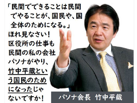 小泉内閣の民間活用に悪乗りし自前の提案を自分で審議し決済、その仕事も優先的に引き受けてボロ儲けするという構図で荒稼ぎ、もちろん電通もその仲間の最大手で官庁に便宜を図り、官庁から便宜を図ってもらうという構図。執行能力に欠ける官庁の弱みにつけこんで儲け放題の構図を作っている。再委託で20億円中抜きにアベは銀行への振込手数料だと説明、そんな高額のはずがないと銀行の反論あり。 |