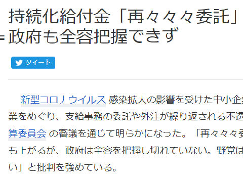 給付金で儲かる電通、インチキ法人で電通を隠す?急ごしらえの法人の定款は経産省が準備して短期間の募集というインチキ構造。 漢字も読めないが何時もエラそうな麻生財務大臣、こんな人に言われたくないというのが国民の声のはず。 |