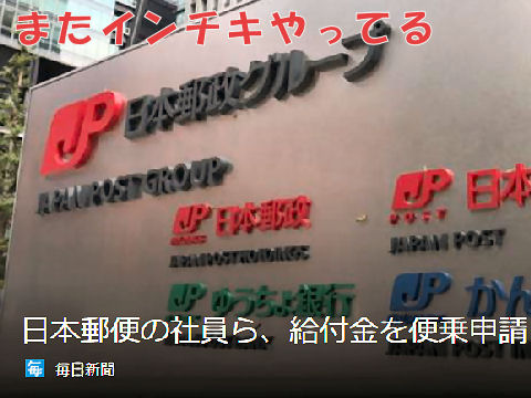 ゆうちょの保険のインチキ勧誘であれだけ問題になり未だに自粛中なのに、自粛をコロナのせいにして給付金を貰う輩がいるとは呆れてしまう。どれだけ根性が腐っているのか? |