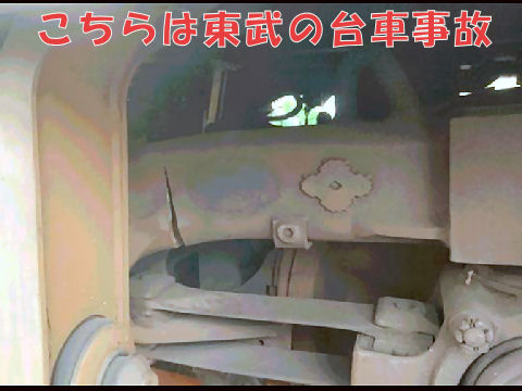 駅構内で停車直前の低速走行での事故だったので人身事故などにならなかったのは幸運だったとしか思えない。これが高速走行中だったらと思うとぞっとする。4年前の東武での事故とそっくりに見える。 |