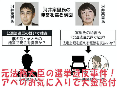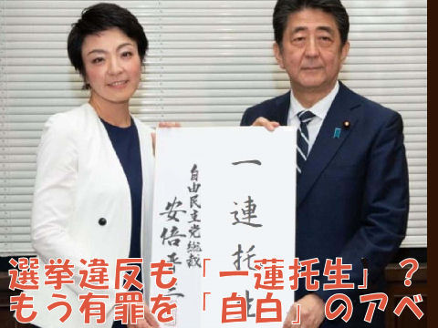 アベが望んだ国会閉幕と同時に逮捕されたトンデモナイ議員夫婦、この案理議員に1億5千万を渡して「一連托生」の選挙をしたのはアベ。逮捕を恐れているとの報道もあり、一国の首相として大いに恥ずかしい、すぐ辞任して当然。 |
