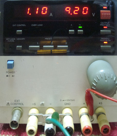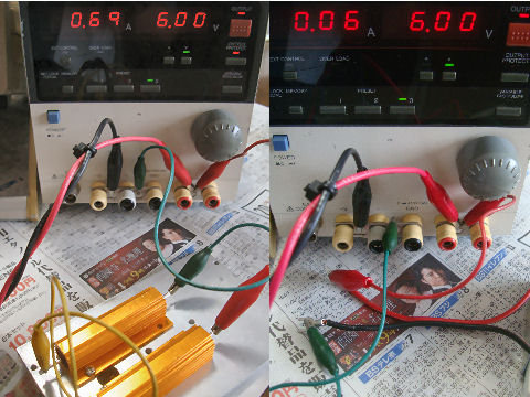 一応動作するが電流制限の設定が良く解らない!負荷をかけると電流制御モードに切替わりLEDが赤く点灯するようなのだが。もっと大電流に設定するにはどうすれば良い? |
