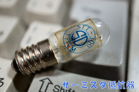 上は水晶発振子でFT243というタイプで開閉可能、削って周波数変更も可、HC-6Uというハーメチックシール型も同時に存在した、これを6逓倍で50.346MHzだった。 下は電球封止のサーミスタ抵抗器、オーディオジェネレータを作ろうと購入したはず、フィードバック回路に入れて振幅の自動調整に使うもの、もちろん真空管式。 |