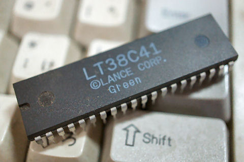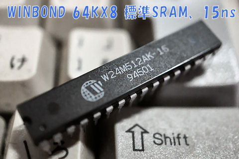 上はどうやら8ビットのマイコンらしいが詳細は不明、下はWINBOND製の64K*8ビットのSRAMで3個あった。 |