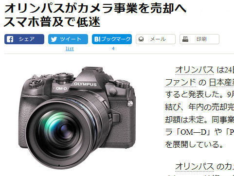 ついにオリンパスもカメラから撤退、最後まで残るのはどこか?キャノンやニコンも相当苦しそうだし。そもそも高級カメラも安いコンデジも売れない時代に生き残れるのか? |