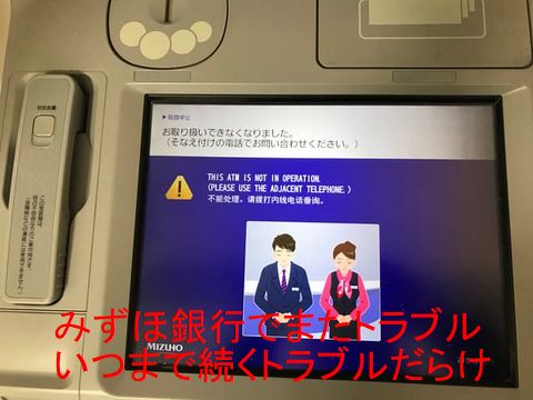 日曜日のATM停止で大迷惑、これまでもトラブルを繰り返したみずほ銀行。去年慎重にシステム移行したはずがまた発生。 コンビニATMならOKとは!通帳やカードが出てこないというトラブルに大ブーイング。 |