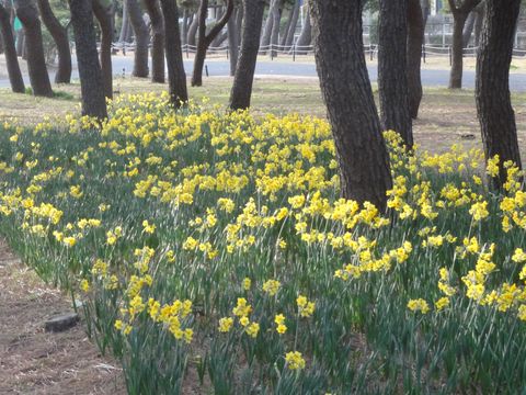去年は予算削減で球根を堀り起りさずに放置、それでも芽が出て咲き始めた水仙。 神奈川県も苦しい財政で公園の維持費も圧縮、クリスマスのイルミネーションも廃止、花の植え替えも民間の好意に甘える状態。 |