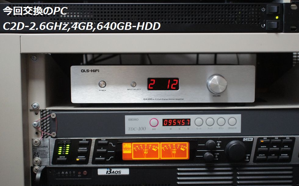 ![]() 新しいDaphileサーバを設置 前面からの吸気ファン2個による騒音が目立つので要対策、完了後にラック内に収容の予定。 |
