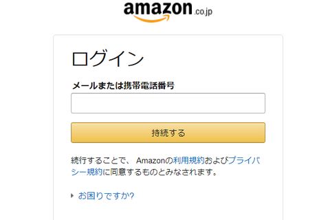 よく見れば「次に」とあるべきところが「持続する」となっていて違和感大、これってCONTINUEの誤訳、どうやら中華の情報窃盗サイトっぽい。リンク先もほとんど不可、本当のアマゾンだけは生きているが。次の画面は住所などを入れさせる画面に。 |