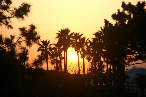 暖かい春の日差しで水分も多く太陽も霞んで見える、お陰で太陽は真っ赤に見えるが。 |