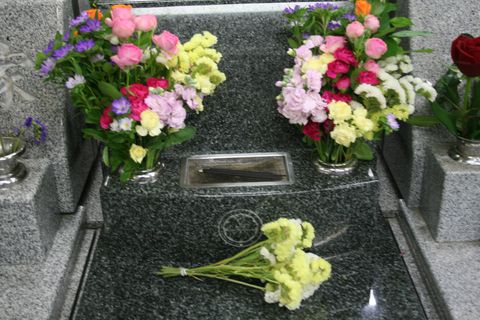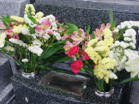 お彼岸前にと墓参りに、2週間だが花は何も残っていなかった。イオンはお彼岸モードで安い花はなく300円以上のものばかり。霊園にも1軒花屋さんが出ていた。 |