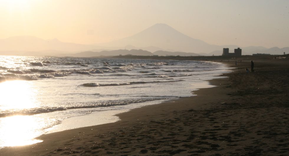 最近は海岸遊歩道ではなく波打ち際を歩くようにしている、適度に湿った砂は固くなって歩きやすい。 |
