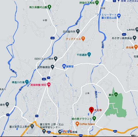 地図で見ると下馬桜から南下して3km程歩けば大石寺へ行けそうだと判明、龍巌渕で桜を撮影後に行ってみるか。富士宮駅あたりは浅間神社もあるし桜のスポット多し。 |