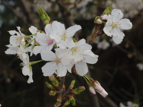 この数日で急に開花が進み満開に近い桜もあるが、まだこれから開花という木もある。 それでもほぼ半数以上の木が満開に近いのは事実。これらはEOS30Dで撮影、デイライトストロボ利用。 |