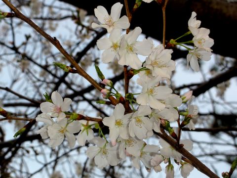 近隣でもあちこちで桜の開花が進む、早い木は満開に近いが一方でまだツボミだけという木もある、ばらつきの大きい状態、海浜公園の桜も2−3分咲に。 |