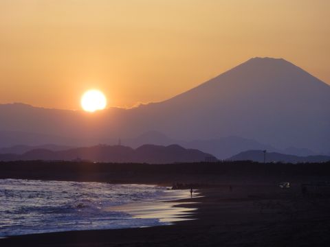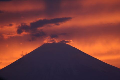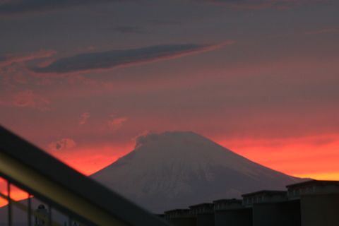 ![]() 夕焼けの富士山 ダイヤモンド富士が近づき沈む太陽が富士山の後ろへ回るようになったので綺麗な夕焼けに。 |