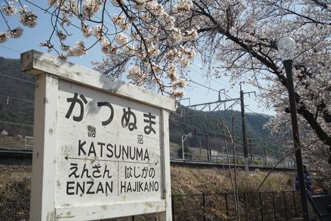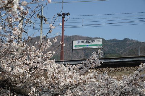 往路で満開の様子だったので途中下車して見学、上り電車は1時間に1本なので待ち時間が多くなる、 |