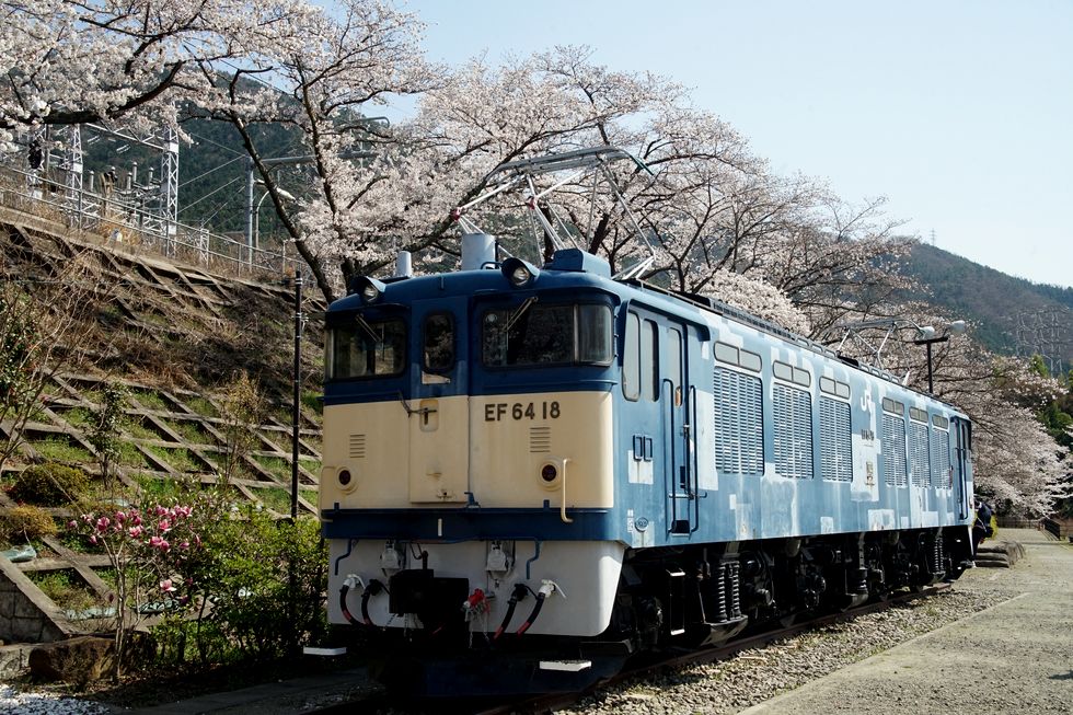 ![]() 甚六桜@勝沼ぶどう郷 これは保存機関車のEF64、外装が痛々しい。 |