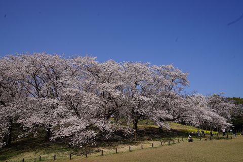 公園は競馬場の走路だった部分のようだが結構起伏がある、桜の咲く丘と馬見所のある地区との間には米軍地域があって入れない。 |
