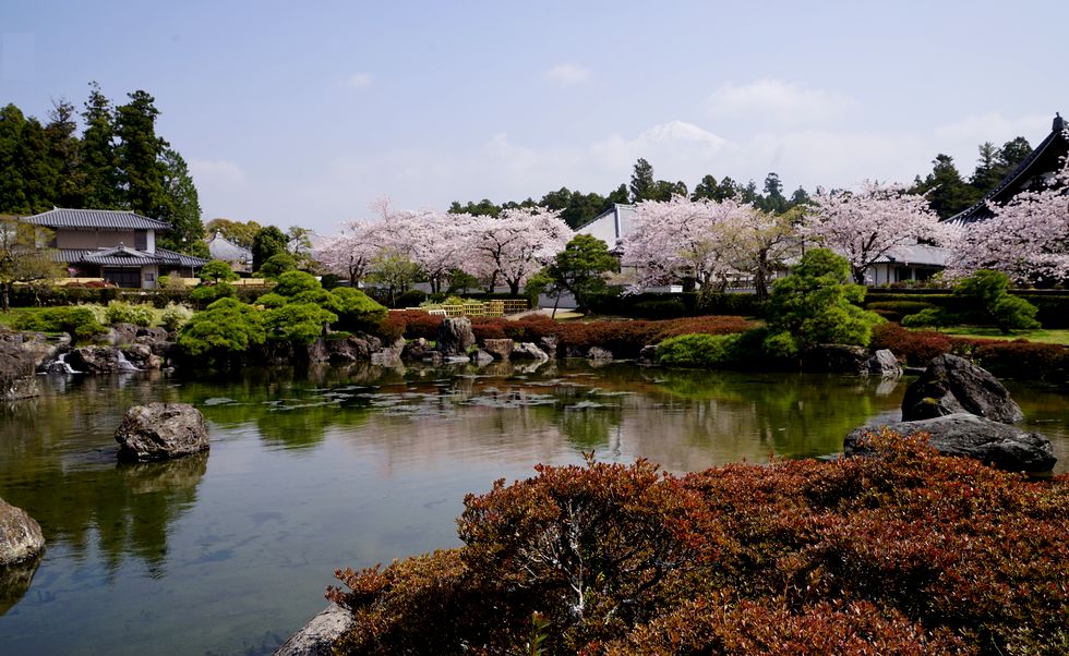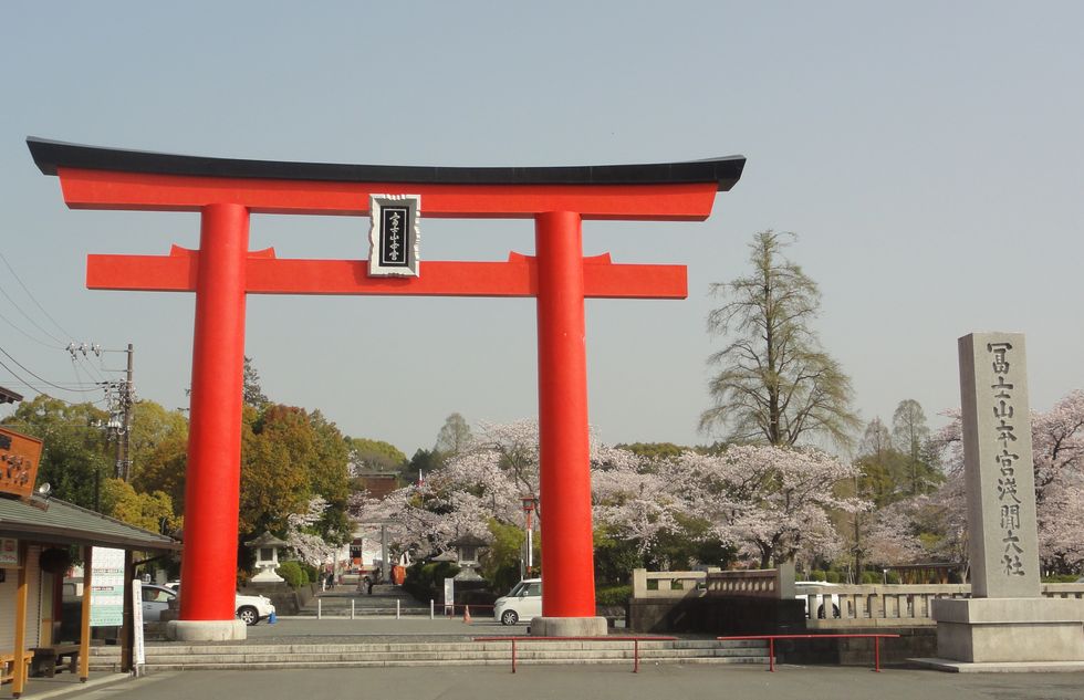 5000本の桜があるそう、日蓮正宗・総本山の大きな寺。創価学会と喧嘩別れするまでは列車で富士宮駅から参詣する人が非常に多かった、その為の専用の臨時ホームや専用出口も駅に残っている。 |