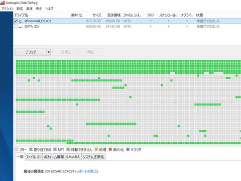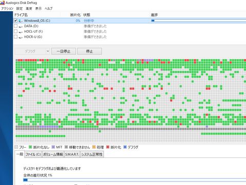 段々と速度低下?がみられるようになったので最大の音楽ファイル(FLACファイルで202GBあった)を外へ逃がしてスリム化、HDDの中がスカスカでフラグメントだらけに。デフラグソフトで整理するもあちこちに分散したまま。サイズ縮小はちょっとだけしか出来ず。 |