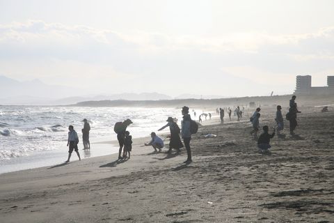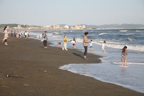 今日は強風も収まり海岸には小さな子供連れが多数。 |