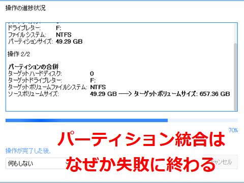 C:ドライブの後半を空けて、D:ドライブと統合マージしようとしたが長い時間が掛かった後にエラーで失敗(原因はパスが長すぎるという意味不明なもの)、結局C:を拡張し音楽データのFLAC以外を移してD:ドライブに空きを作った。 |
