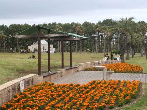 夕方から天気が悪くなるとの予報で4時過ぎから散歩に(予報通りの南風と雨)。公園も海岸も連休最終日だが人は少なめ。 |