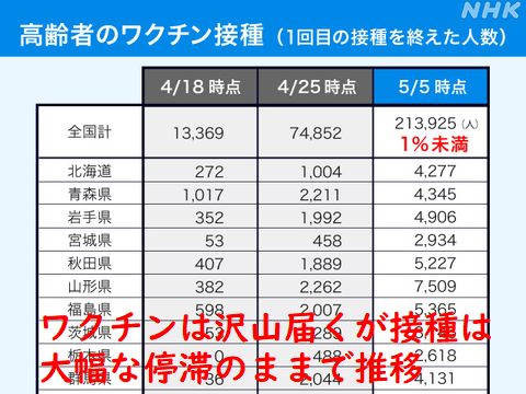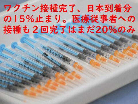ロイター通信は7日、日本国内に到着した新型コロナウイルスワクチンは2800万回分に達したが、接種が完了したのは15%程度の400万回超で、約2400万回分が「(接種を担当する)人手や手配上のボトルネック」によって使われないまま残っており、接種ペースは「遅いままだ」などと批判的に報じた。 |
