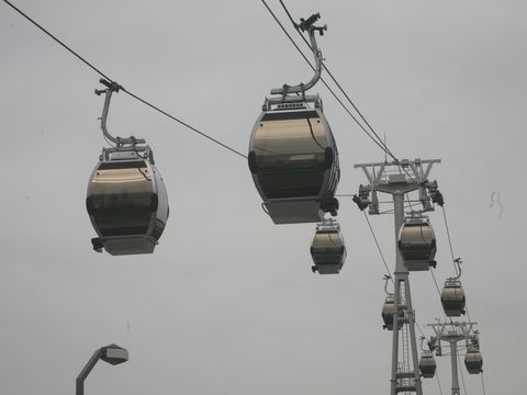 最初見たときは「待ち時間20分」となっていて乗降場へのエレベータに待ち行列があったが、数分後にはほぼ待ちゼロ。片道1000円は高いが平日はほぼ空だろうから仕方ないか。 |
