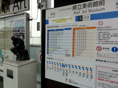 駅のホームには「ロダンの考える人」、パリのメトロみたい。 |