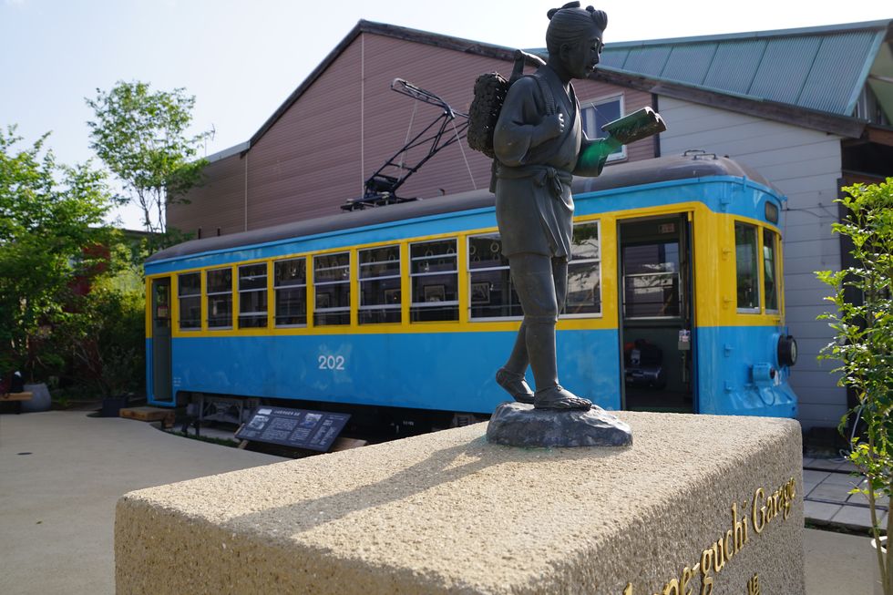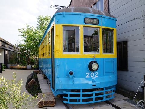 「箱根口ガレージ報徳広場」に置かれた旧・小田原市電、正確には箱根登山鉄道小田原市内線である。廃車となったがクラウドファンディングで引き取り、「報徳広場」に展示、2021年3月12日にオープンし新聞にも記事が載った。 |