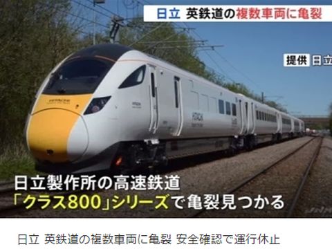 日立の英国特急車両、念の為の調査で車体吊り上げ部のアルミ溶接で亀裂、運用停止になったとの報道。線路が悪いのに高速運転で「強度不足」との推察もあるが本当なら大変。 コロナ対策でのエアータオル停止は根拠レスだったと今頃判明、根拠とした論文がずさんなものだった。エアタオル停止をしている国は他にないのも判明。何をやってんだか? |