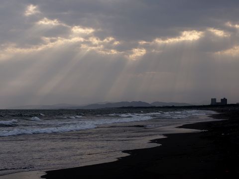 ![]() 初夏?の海岸風景 人出が多く海岸の砂浜は足跡だらけに。 |