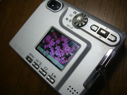 2002年発売のDiamgeXt、320万画素、光学3倍ズーム機能を搭載、屈曲光学系の採用で薄型ボディを達成、メインスイッチを入れるとすぐに撮影できる高速起動、音声付き動画や音声も記録可能。 バッテリを充電して外で花を撮影してみたがバッテリが弱っていて直ぐに電池切れになる。 一度目の中山道歩きに使った記憶あり。 |