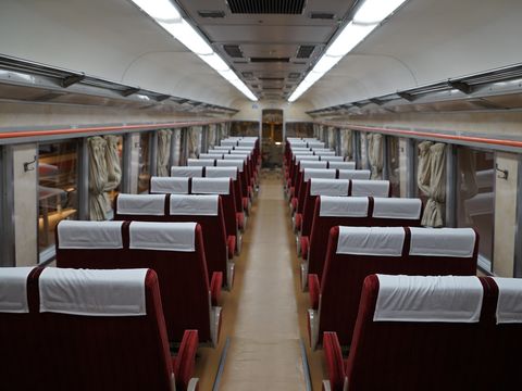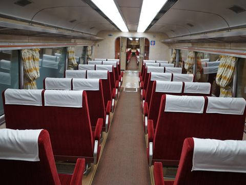 新幹線の原型となったとされる車両、連接台車と低い車高で高速性能を狙ったもの。 |