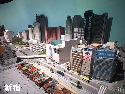 新宿はビルなので駅の電車は見えない、海老名は駅前のビナウォーク一帯を再現している。途中には相模大野駅も。 |