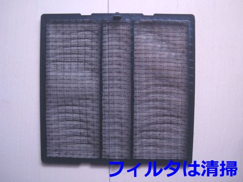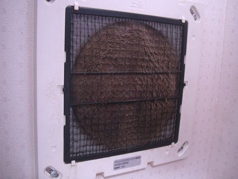 カバーははめ込み、外すとメッシュのフィルタが見える、一度も清掃していないので結構汚れが付いている。 |