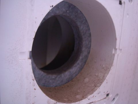 フィルタの後ろのパイプ部?にも汚れ、ついでに清掃。防音?のためかリング状のフィルタのようなものが入っている。 |