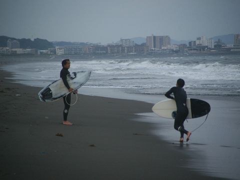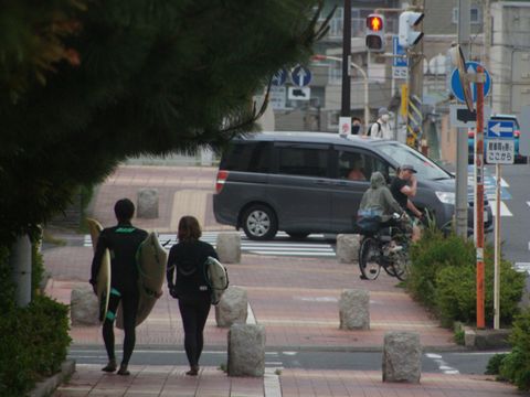 近隣にはサーファショップも複数あり、ウェットスーツ姿でサーフボードを持って歩くサーファーや自転車でボードを運ぶサーファーも日常的に見かける。結構年寄りのおばさんサーファーや子供のサーファーも居て広い年齢層のスポーツだと解る。最近階下の住居に引っ越してきた4人家族、濡れたサーフボードが玄関に立て掛けてあったので旦那がやるみたい。 |