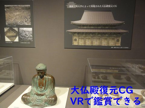 先週の新聞に湘南工科大が作成した大仏殿の復元画像がVRで見られるという記事を見て観覧に。平日の朝なので他には殆ど人がいない、VR(約5分)も待ち時間ゼロで見ることができた。礎石の数と位置から建物の大きさと構造を推測、瓦が出土していないので檜皮葺のような屋根だったらしい。 |