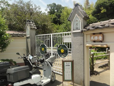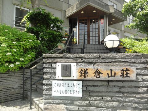 交流館を出て東へ、広い芝生のある古我邸レストランは11時からの営業、その先には古いキリスト協会、鉄道に並行する道に左折し北へ進むと寿福寺、ここは非公開、奥には北条政子の墓などもある。 |