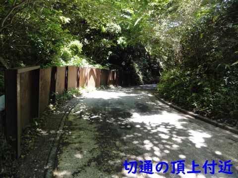 切通部分は土砂崩れの恐れがあり車は通行止め(二輪車と歩行者のみ可)、最上部からは下るが距離は短い。 |