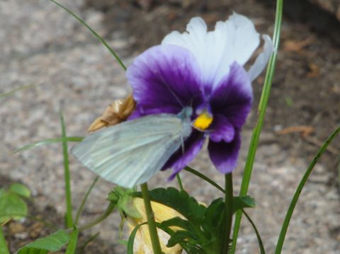 今日も花をたっぷり入れてきた、さすがにこの時期は来る人もすくないよう。行く途中で道端で見つけた蝶、4−5匹が密を求めて飛んでいた。 |