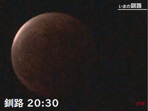 月の出から雲でほとんど見えない状態、YOUTUBEでの生中継は北海道や沖縄が中心、ときどき仙台とか。 |