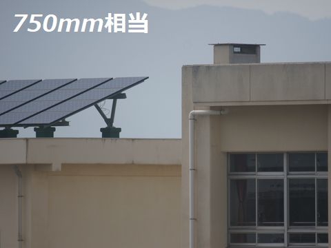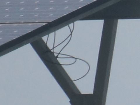月食前にテスト撮影、さすが750mm相当なので引き付けられる。中心部を原寸で切出したのが下の画像、結構きちんと解像しているのには驚き(太陽光パネル下のケーブル部)。 |
